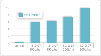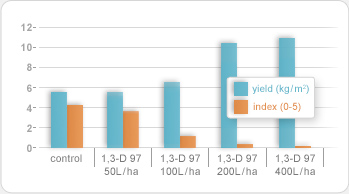 Dose response of 1,3-dichloropropene 97 % (1,3-D 97) on yield and root-knot (Meloidogyne spp.)
